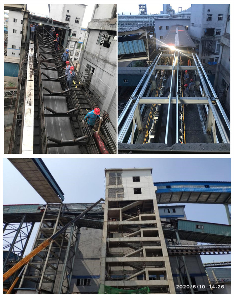 至新區(qū)7、8號(hào)焦?fàn)t輸煤生產(chǎn)線是焦化筒倉一期一步工程施工難度最大的一條生產(chǎn)線,新建3個(gè)轉(zhuǎn)運(yùn)站、2條皮帶通廊、改造1條皮帶通廊,全長400多米。皮帶通廊即有半地下鋼筋混凝土結(jié)構(gòu)也有架空鋼結(jié)構(gòu),架空部分緊靠鐵路及高落差護(hù)坡,與生產(chǎn)嚴(yán)重交叉,組織施工及吊裝難度極大。項(xiàng)目部各專業(yè)人員積極配合,協(xié)調(diào)各施工單位,分段作業(yè),由于組織得力,各專業(yè)銜接緊密、配合緊張有序,土建積極給鋼結(jié)構(gòu)、鋼結(jié)構(gòu)積極為機(jī)裝、機(jī)裝積極為電裝及后工序創(chuàng)造條件,特別是最后三天,鋼結(jié)構(gòu)收尾、支架及皮帶安裝、單機(jī)調(diào)試、設(shè)備運(yùn)行調(diào)整、舊皮帶通廊改造、新舊系統(tǒng)聯(lián)動(dòng)控制調(diào)試、照明報(bào)警及語音系統(tǒng)安裝調(diào)試,時(shí)間緊任務(wù)重施工難責(zé)任大,現(xiàn)場各類施工人員多,項(xiàng)目部人員靠現(xiàn)場,緊抓安全,積極協(xié)調(diào),最終克服了各種困難,最終超額提前圓滿完成任務(wù)。