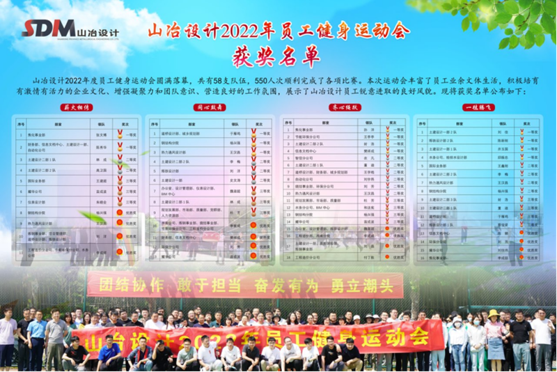 運(yùn)動(dòng)會(huì)共設(shè)置了四個(gè)團(tuán)隊(duì)協(xié)作項(xiàng)目,“一毽騰飛”、“齊心繩躍”、“同心鼓舞”和“薪火相傳”,趣味性與挑戰(zhàn)性并存、鍛煉運(yùn)動(dòng)員的靈活性、協(xié)調(diào)性和團(tuán)隊(duì)默契。經(jīng)過(guò)認(rèn)真策劃組織,共有58支隊(duì)伍,500多名運(yùn)動(dòng)員順利完成了各項(xiàng)比賽。全體運(yùn)動(dòng)員、裁判員充分發(fā)揮“團(tuán)結(jié)協(xié)作、敢于擔(dān)當(dāng)、 奮發(fā)有為、勇立潮頭”的精神,取得了優(yōu)異的成績(jī),展示了山冶設(shè)計(jì)員工銳意進(jìn)取的良好風(fēng)貌。