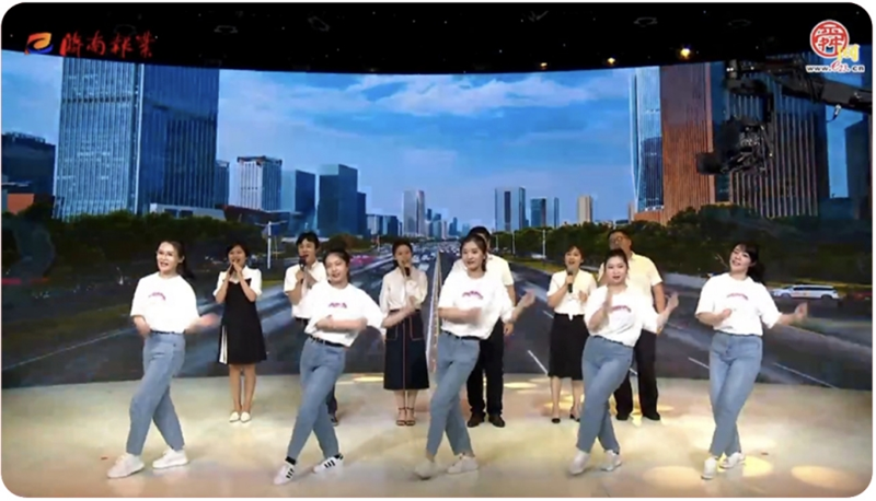 活動(dòng)的開場(chǎng)演出節(jié)目——歌舞《我們都是追夢(mèng)人》,是由山冶設(shè)計(jì)代表隊(duì)的5名耀華公司舞蹈演員(左起:趙云;劉佳瑋;張培惠;王佳穎;劉海燕)與市委市直機(jī)關(guān)工委、市委黨校、濟(jì)南出版有限公司、市政府資金結(jié)算中心的6名歌唱演員聯(lián)合出演,催人奮進(jìn)的勵(lì)志歌詞,渾厚悠揚(yáng)的甜美歌聲,火辣、動(dòng)感、青春的曼妙舞姿,頃刻間打開了每位觀眾的心扉,讓人心潮澎湃,斗志昂揚(yáng),情禁不抑。該節(jié)目獲得了本次演出活動(dòng)的“優(yōu)秀組織獎(jiǎng)”。