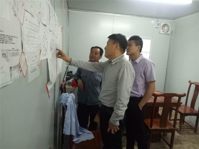 會(huì)談之后,宋總到施工現(xiàn)場(chǎng)考察指導(dǎo)高爐公輔項(xiàng)目及污水處理項(xiàng)目工作。在高爐公輔項(xiàng)目施工現(xiàn)場(chǎng)辦公室里,宋總對(duì)照著墻上張貼的項(xiàng)目進(jìn)度計(jì)劃及樁基平面圖,詳細(xì)了解項(xiàng)目的進(jìn)展情況,并在考察現(xiàn)場(chǎng)后,認(rèn)真聽取了項(xiàng)目部對(duì)施工進(jìn)度、質(zhì)量、安全管理的工作匯報(bào),宋總對(duì)項(xiàng)目部管理人員的辛勤工作表示了肯定,并針對(duì)工程難度大、樁基分包單位力量弱、價(jià)格低等存在的困難做出了部署。