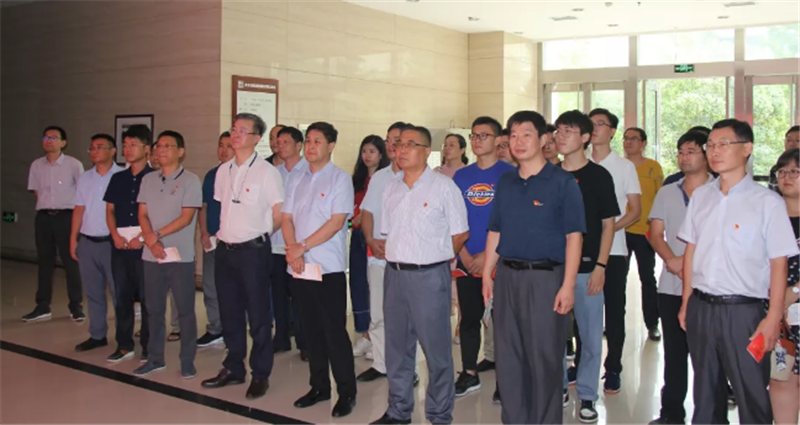 在鮮紅的黨旗前,黨委書記谷卓奇、黨委副書記劉洪亮、副總經(jīng)理李銳帶領(lǐng)大家重溫了入黨誓詞。