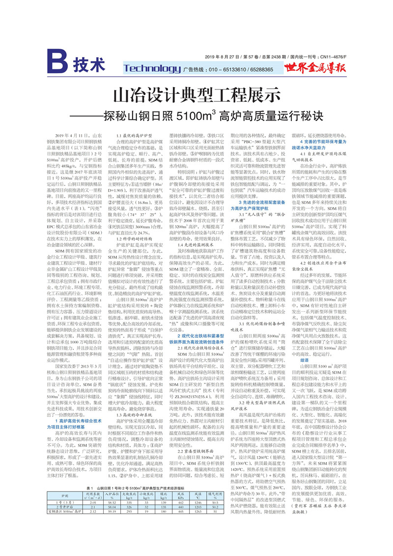 山冶設(shè)計典型工程展示——探秘山鋼日照 5100m3 高爐高質(zhì)量運(yùn)行秘訣