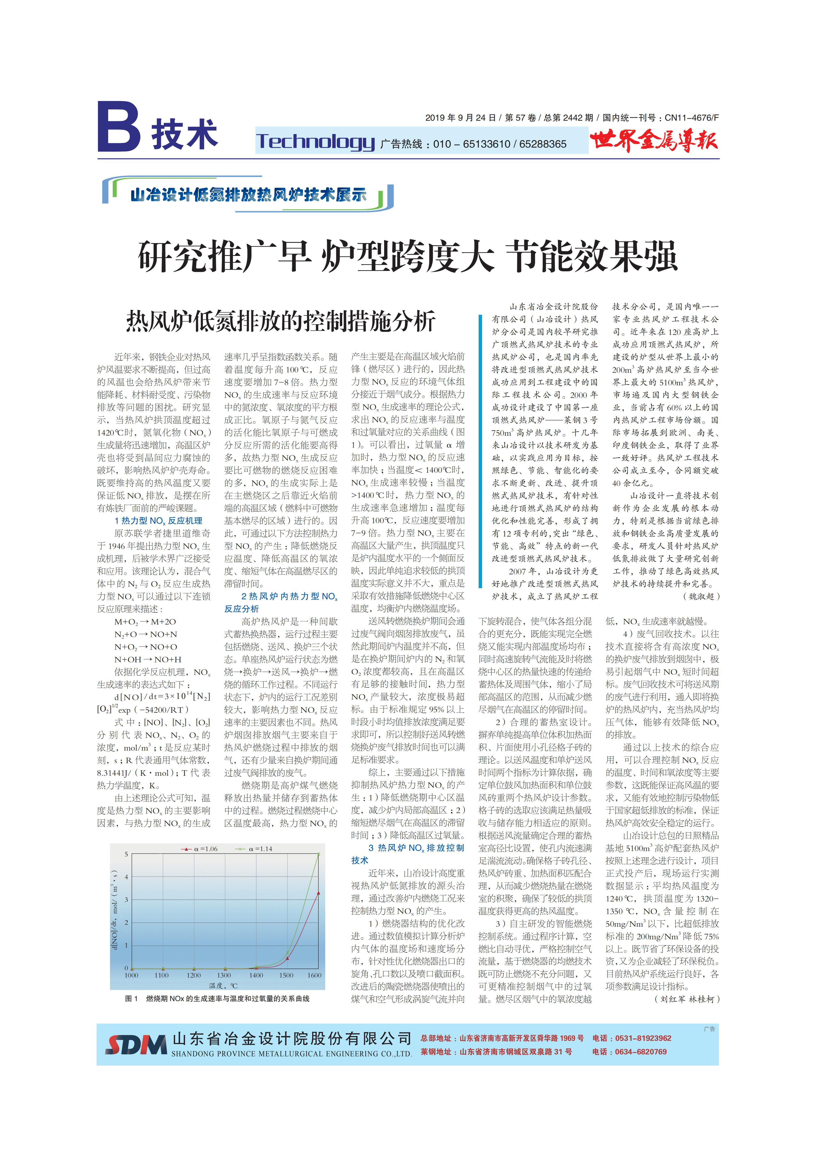研究推廣早 爐型跨度大 節(jié)能效果強——山冶設計低氮排放熱風爐技術展示