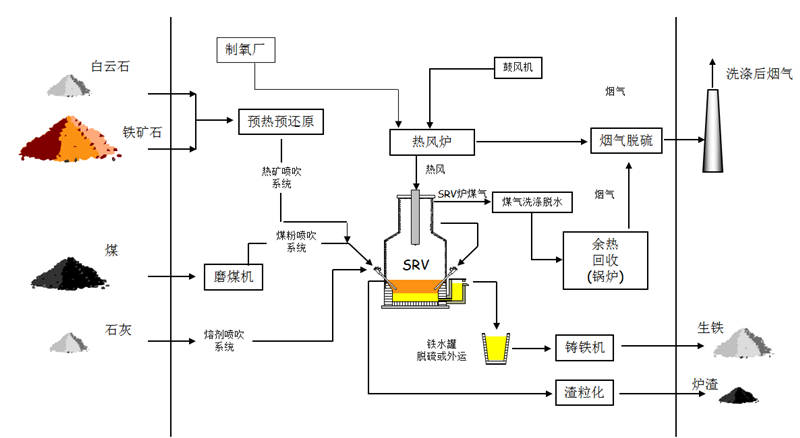 由于不需要使用焦炭、燒結(jié)礦或球團(tuán)爐料,可使用更便宜的鐵礦粉和非焦煤,并且可直接噴吹工廠廢料,因此可取消燒結(jié)和焦化廠,煉鐵成本較低。